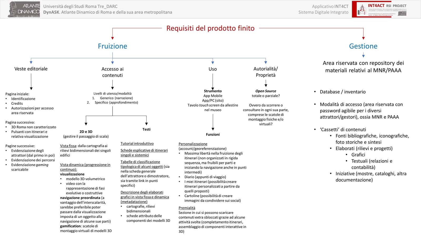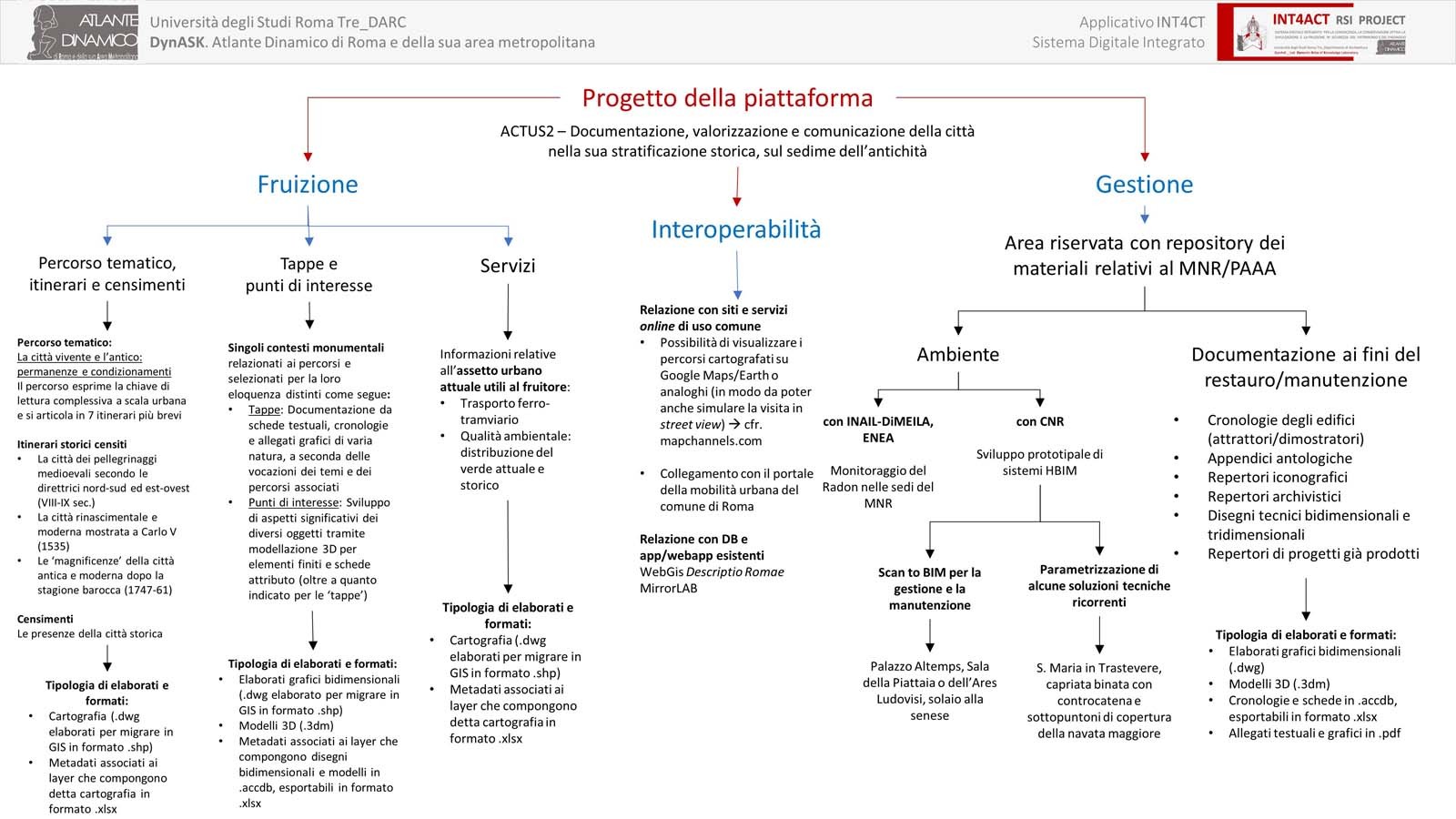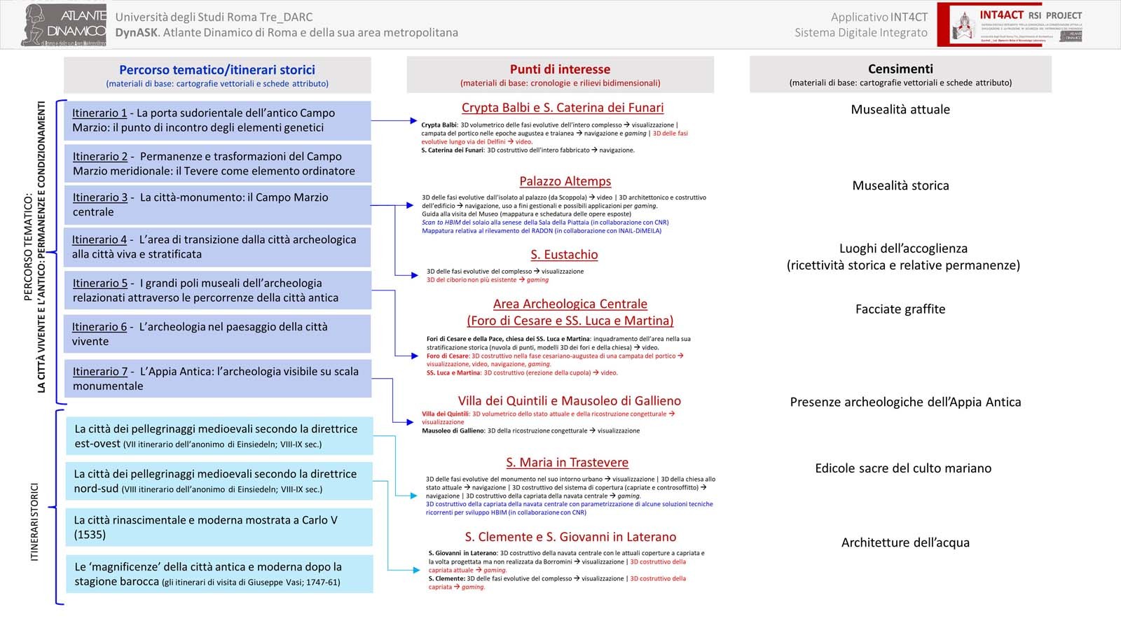 - Intermodalità: navigabilità ‘in continuo’ attraverso diversi ambienti digitali, GeoDB, Modellazione 3D, HBIM, Gamification, Storytelling, AR)