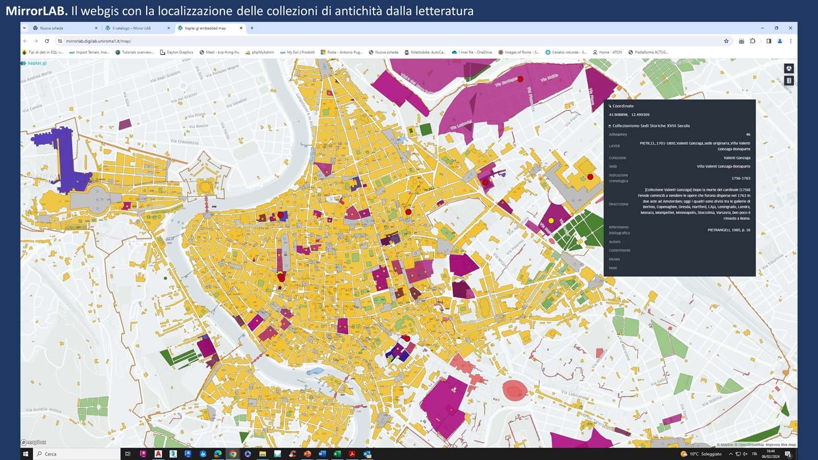 - Cartografia delle collezioni attuali e storiche a Roma dalle fonti bibliografiche.